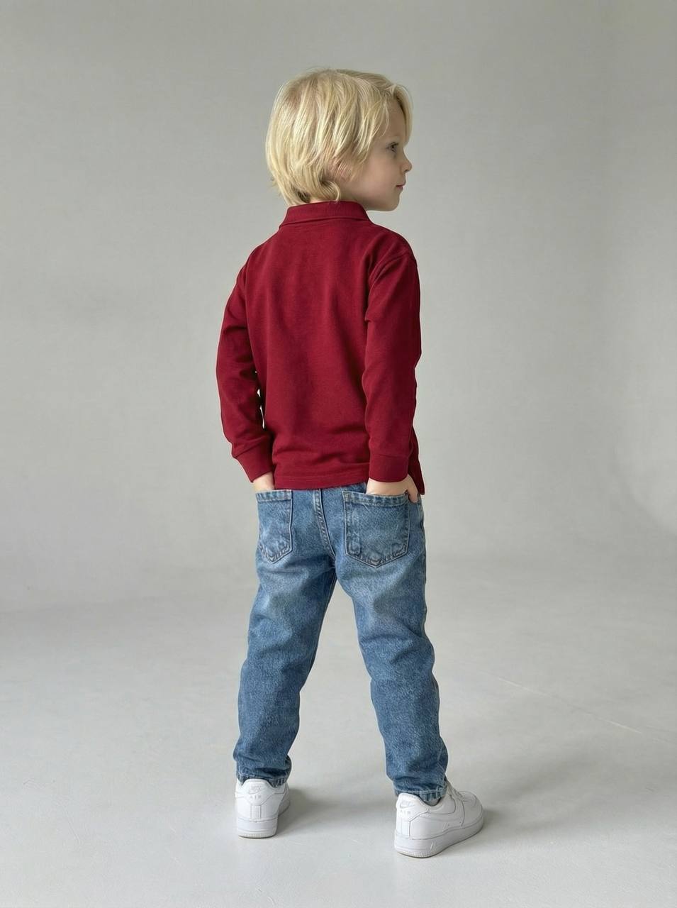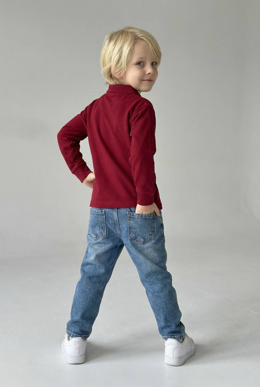 Erkek Çocuk Kot Pantolonlu Polo Yaka Uzun Kollu Kombin