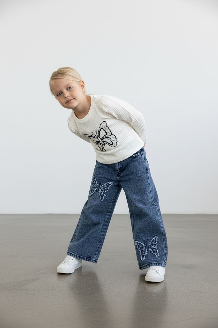 - Eşsiz Kelebek Tasarımı: Kot pantolon üzerinde yer alan zarif kelebek tasarımı, özel bir dokunuş katmakta ve kız çocuklarının stiline neşe katmaktadır.