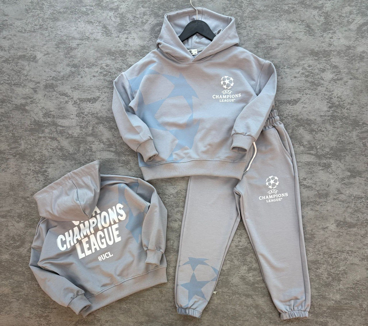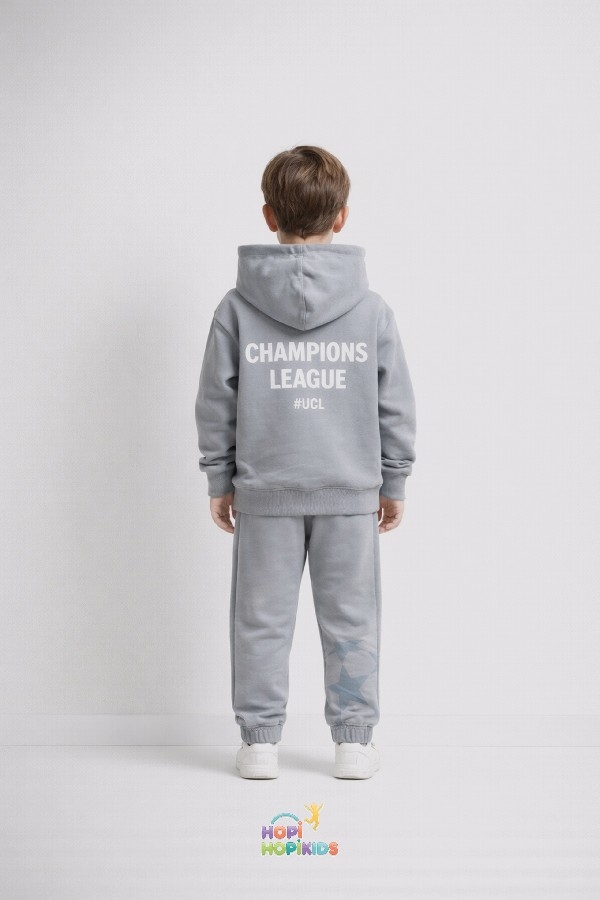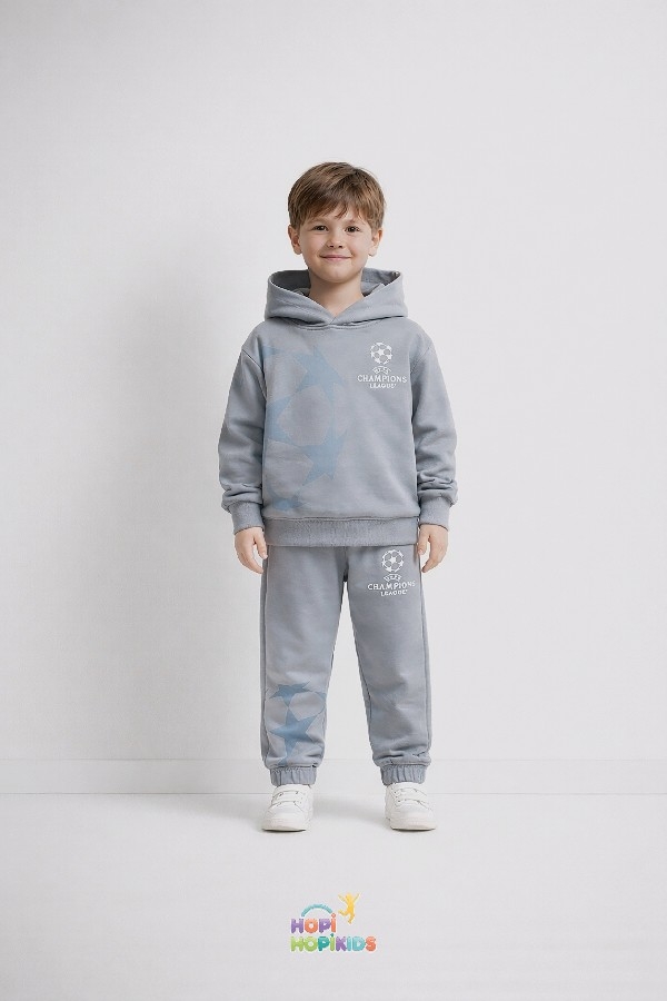 UEFA Champions Kapüşonlu Erkek Çocuk 2’li Takım 👕⚽ Çocuklar için hem rahat, hem spor, hem de şık bir kombin arıyorsanız doğru yerdesiniz. UEFA Champions kapüşonlu erkek çocuk 2’li takım, %100 pamuklu yapısı sayesinde gün boyu nefes alır, terletmez ve maksimum konfor sunar. 5-12 yaş aralığındaki erkek çocuklar için özel olarak tasarlanan bu takım;